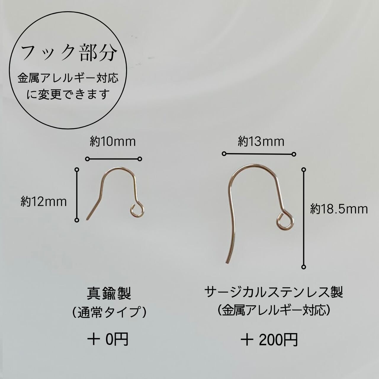 +200円にて、金属アレルギー対応のサージカルステンレス製フックへ変更が可能です。
