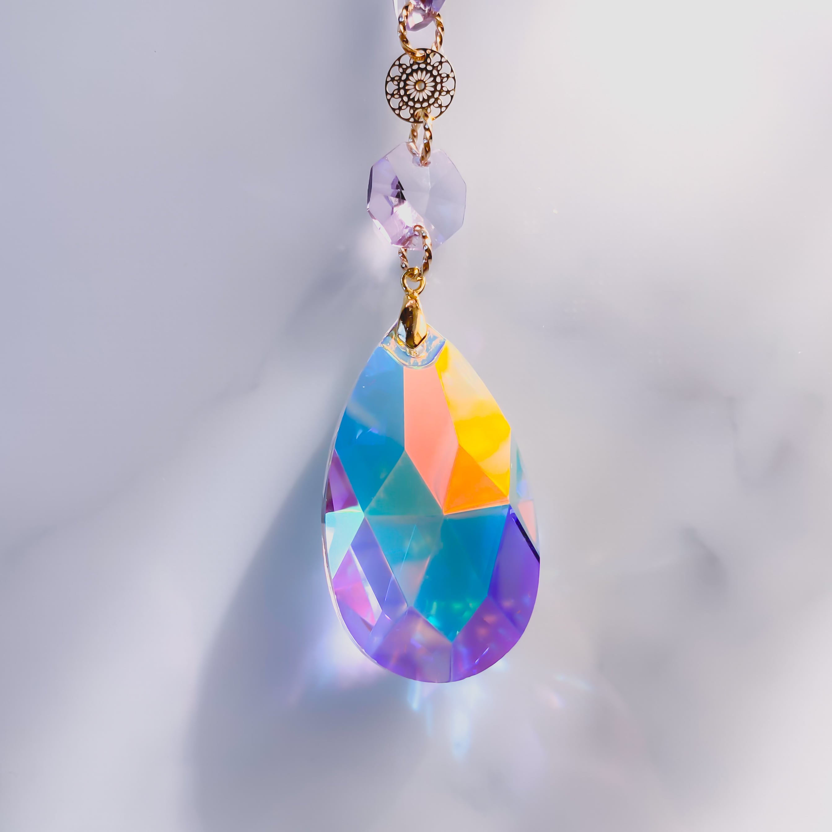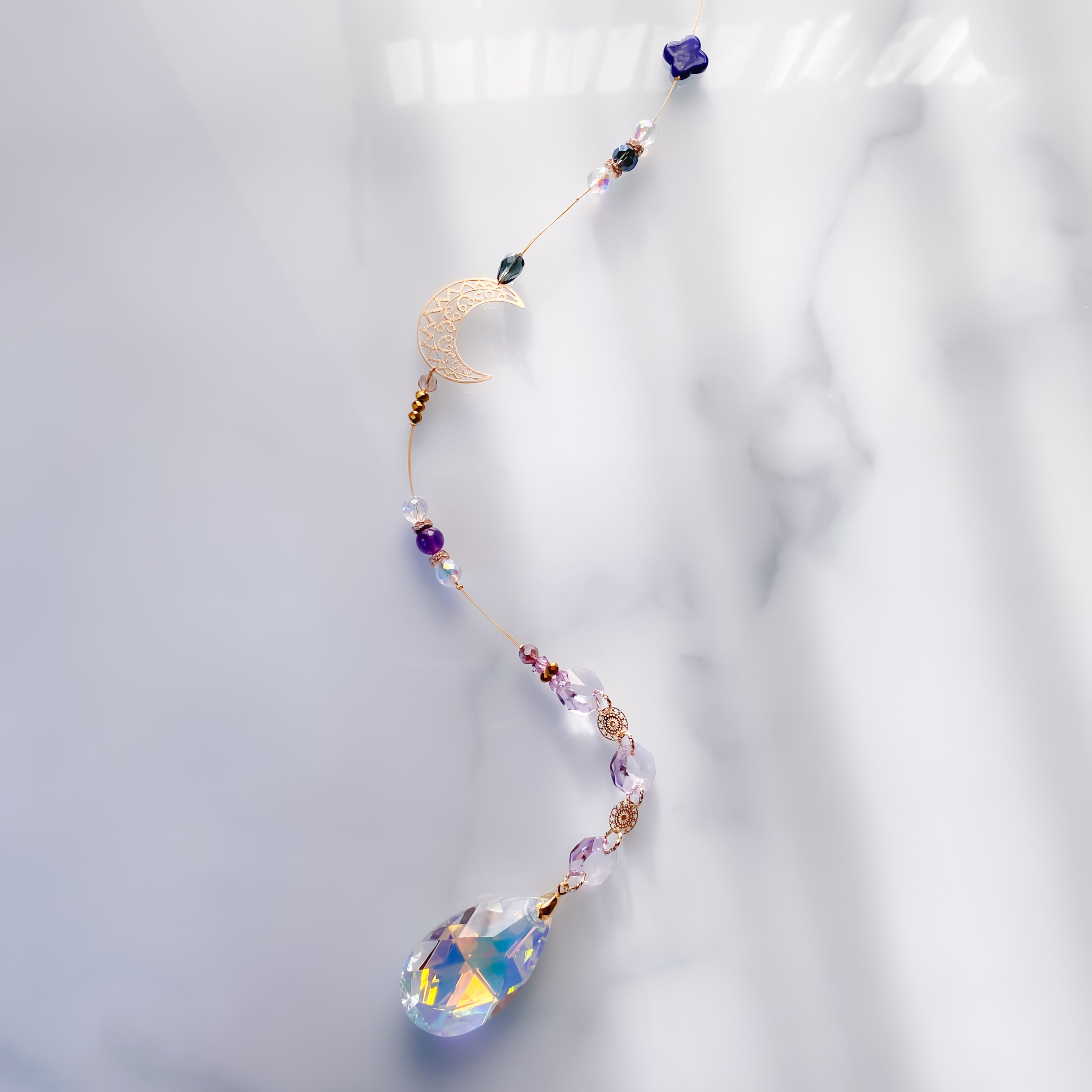 リラックス効果や心地よい睡眠をサポートする、ラピスラズリ&アメジスト入りのロングサンキャッチャー。