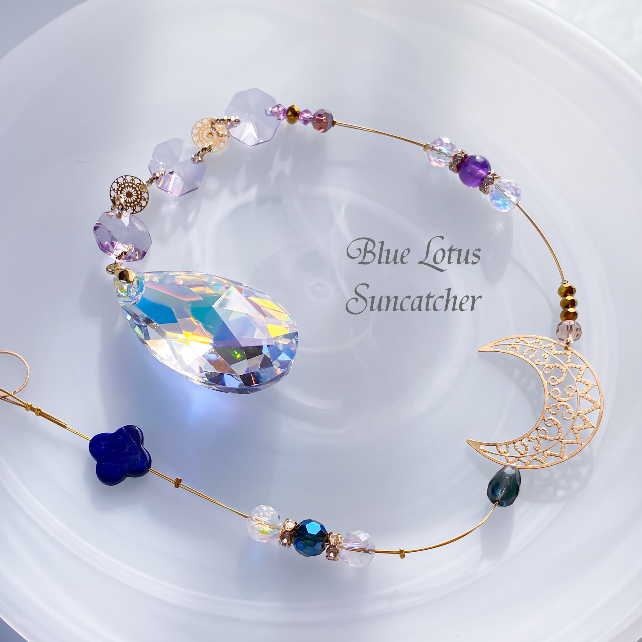 (サンキャッチャー上部のフラワー型の青い石がラピスラズリです)