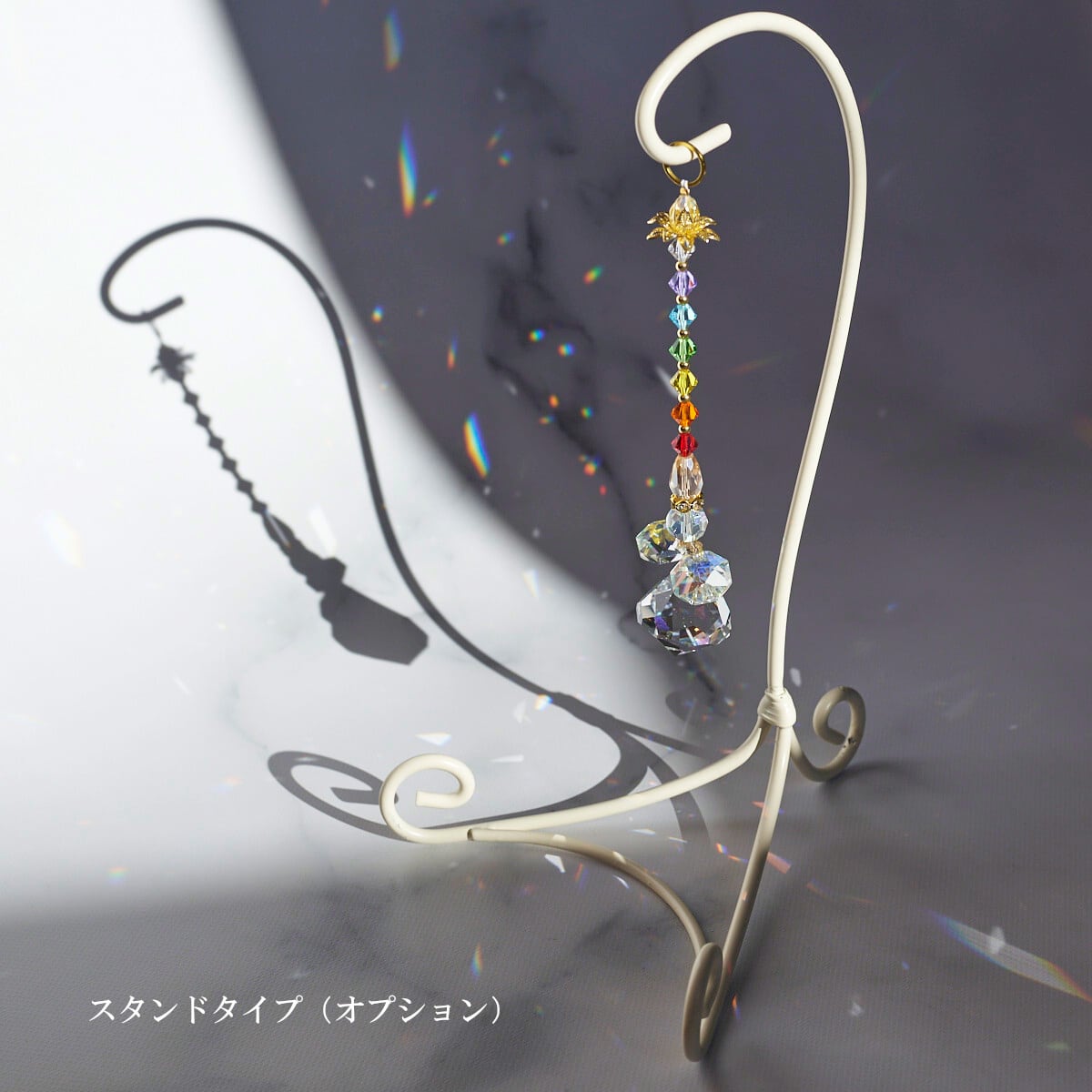 陽のあたる窓辺に吊るしたり、スタンドに飾ることでキラキラした美しい虹を楽しむことができます。
