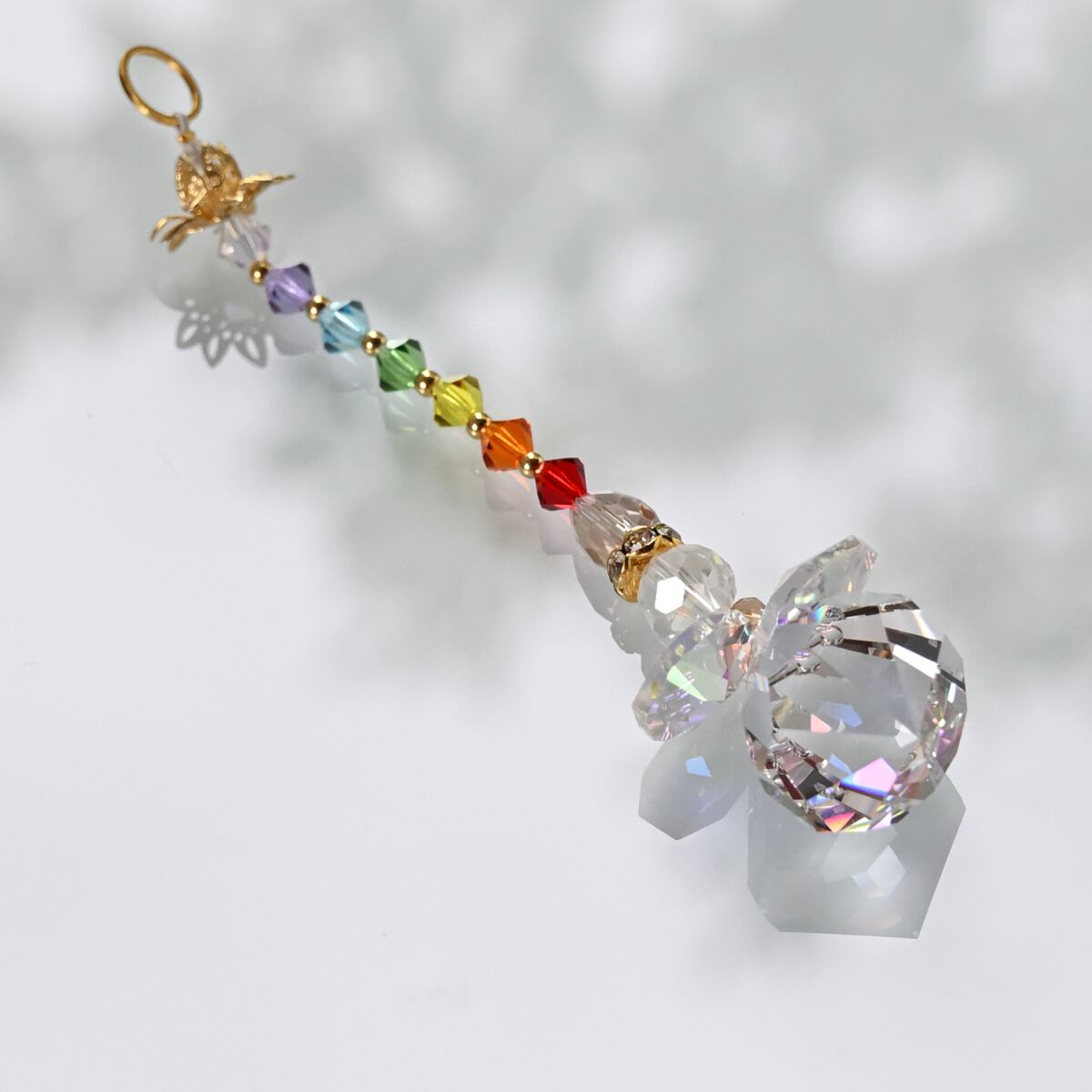 チャクラカラーと言われている7色を使い、小さな天使のサンキャッチャーに仕上げました。