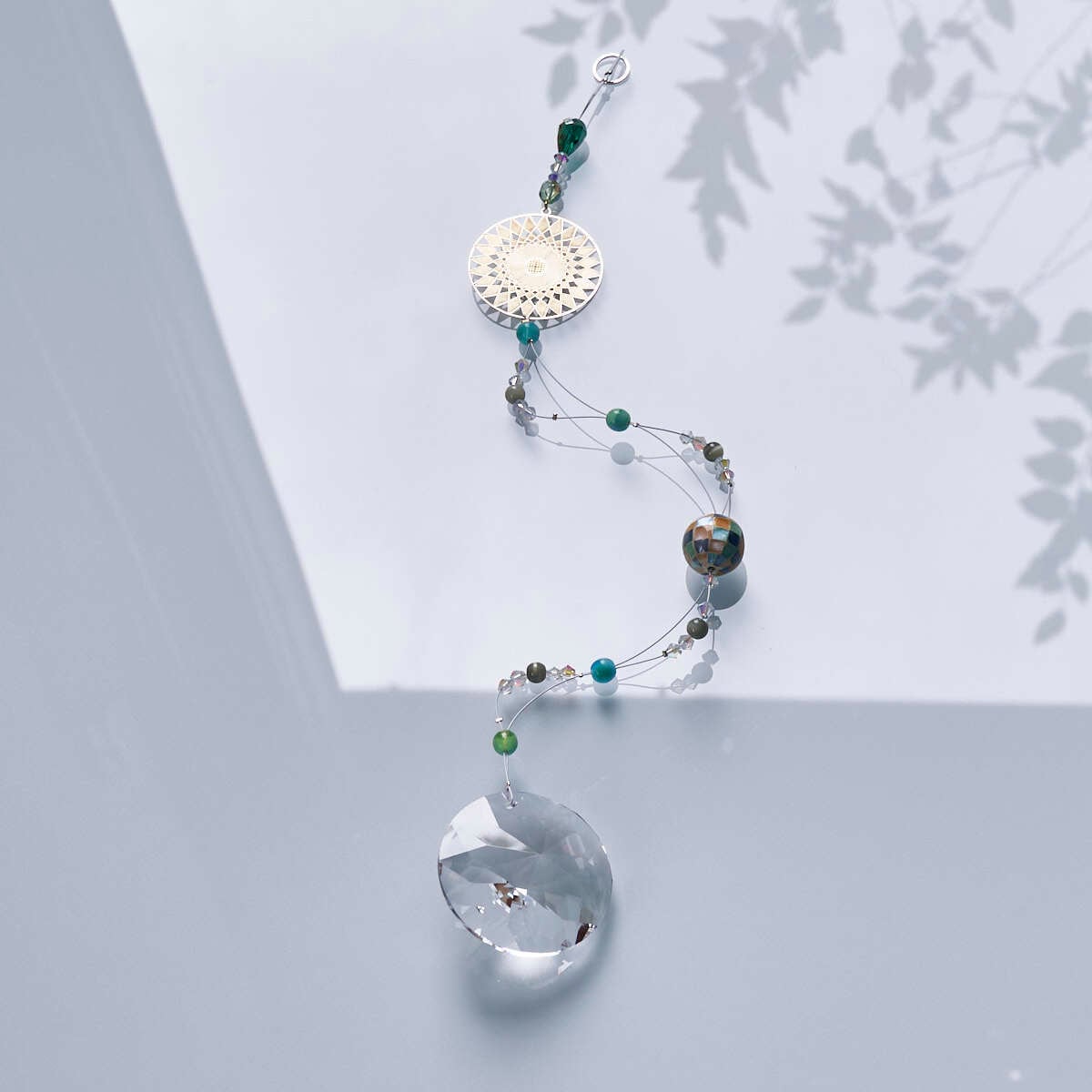 サンキャッチャーとは太陽の光を受けて輝き、そのプリズム効果で虹模様の光のかけらを作り出すインテリアアイテムです。