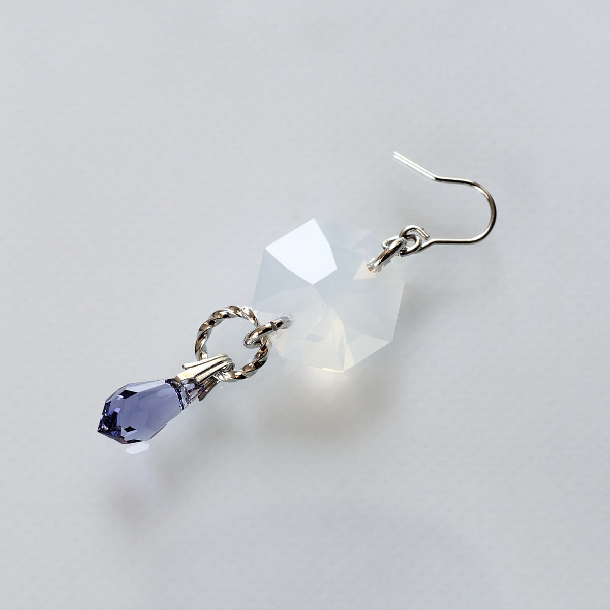 【スワロフスキー】★一点物★ホワイト/タンザナイト*オクタゴン&しずくピアス