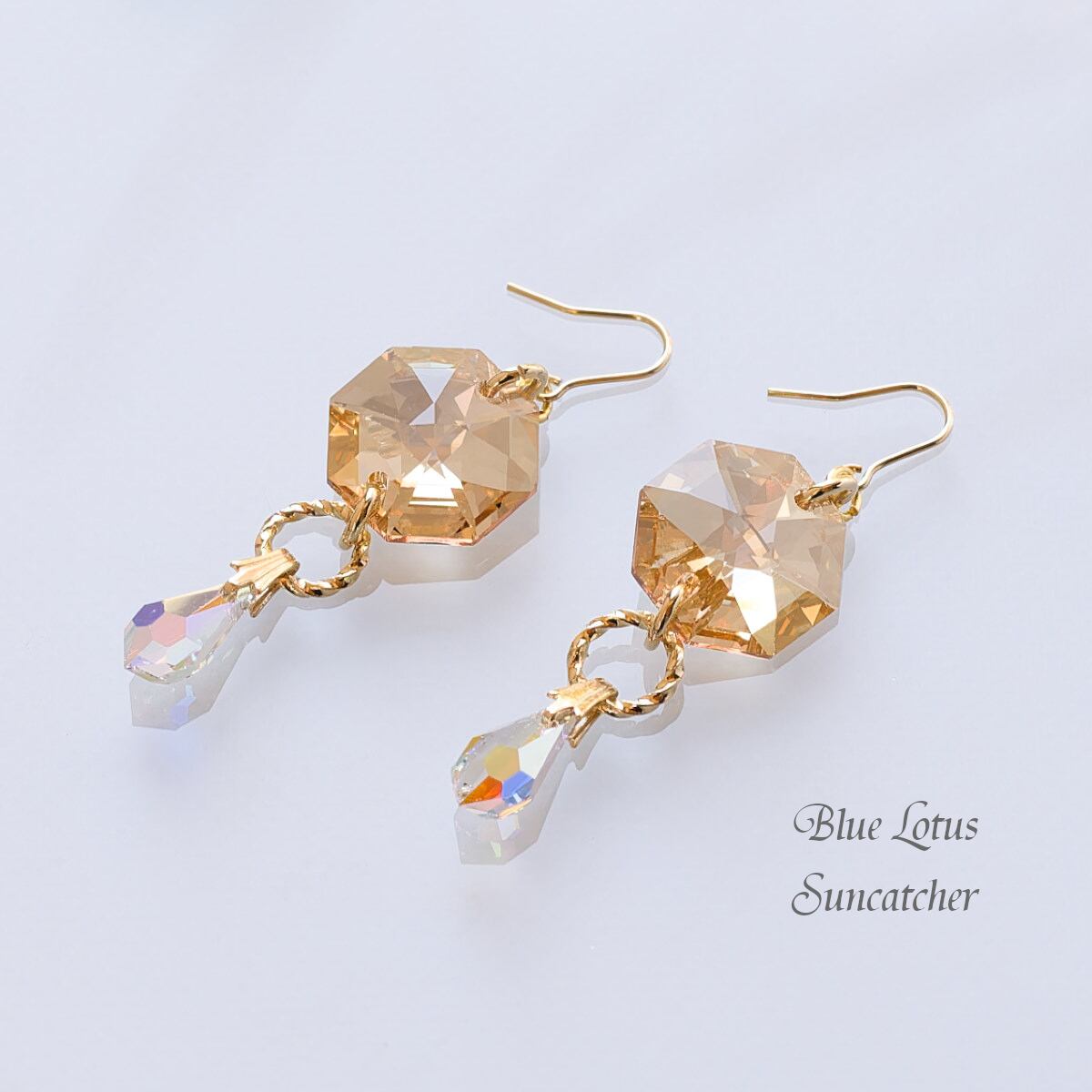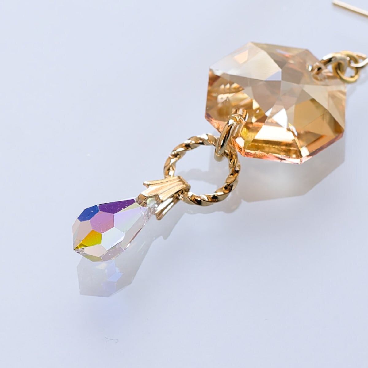 【スワロフスキー】★一点物★ゴールド/オーロラ*オクタゴン&しずくピアス